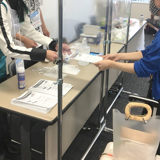 イベント時にどうしてもやり取りの多い受付は、飛沫防止シートを活用。