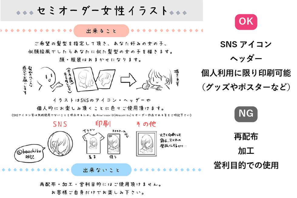 作家リターン枠「かずちこ」/¥20,000/限定10点 「セミオーダー女性イラスト+グッズセット」 ご希望の髪型の女の子をデジタルで描かせて頂きます(詳細は画像をご覧下さい) ①髪型を指定して頂き、あなた好みの女の子を描きます ②イラストはSNSアイコンや個人的なグッズ制作にご使用頂けます ③高解像度jpgの納品 ④ グッズセットの郵送時にお礼のお手紙とサイン入りポストカードを同封します 【オーダー方法】 支援後、メルメリィマーケット実行委員会よりご連絡いたします。 ※お届け予定は前後する可能性がございます。